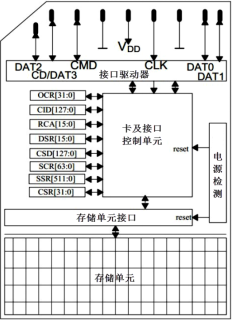 SD卡和Micro SD只有引脚和形状大小不同,内部结构类似,操作时序完全相同,可以使用完全相同的代码驱动,下面以9’Pin SD卡的内部结构为为例,展示SD卡的存储结构。