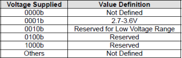 这里,我们需要在发送CMD8的时候,通过其带的参数我们可以设置VHS位,以告诉SD卡,主机的供电情况,VHS位定义如表37.1.5.2所示: