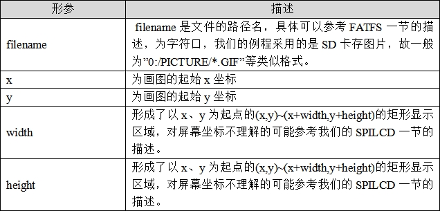 我们使用这个接口,把解码后的图形数据与LCD的实际操作对应起来。为了方便去显示图片,我们需要将图片的信息与我们的LCD联系上。这里我们定义了_pic_phy和_pic_info分别用于定义图片解码库的LCD操作和存放解码后的图片尺寸颜色信息。它们的定义如下: