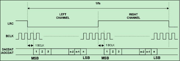 飞利浦(SAI)标准模式,数据在跟随LRC传输的BCLK的第二个上升沿时传输MSB,其他位一直到LSB按顺序传输。传输依赖于字长、BCLK频率和采样率,在每个采样的LSB和下一个采样的MSB之间都应该有未用的BCLK周期。飞利浦标准模式的SAI数据传输协议如图41.1.2.1所示:
