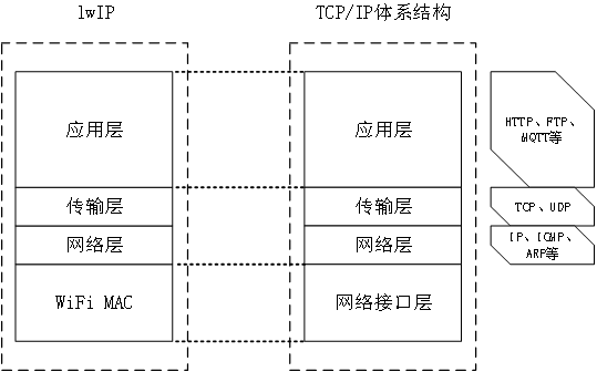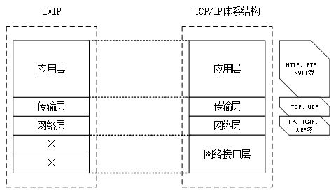 图 47.2.1 lwIP与TCP/IP体系结构的对应图解