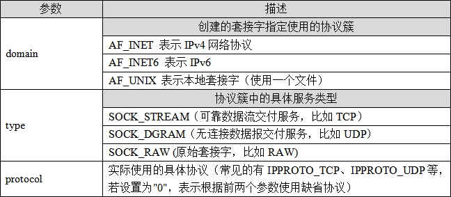 表47.4.1函数Socket()相关形成描述