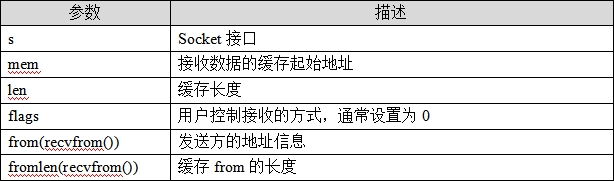 表47.4.3 函数recv()和recvfrom()形参描述