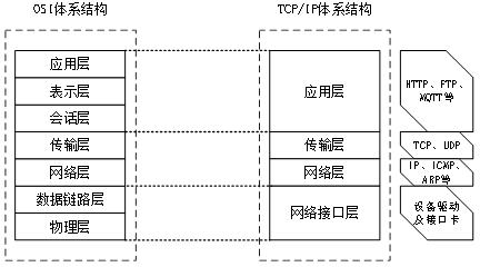 需要注意的是,TCP/IP协议栈和传统的OSI模型并不完全对应。TCP/IP协议栈是一个简化的模型,强调了实际的协议实现和因特网的实际运作方式。相比之下,OSI模型更加全面和理想化,它提供了一个框架来描述不同系统之间的交互方式。下图是IOS协议栈与TCP/IP协议栈分层架构的对比图。
