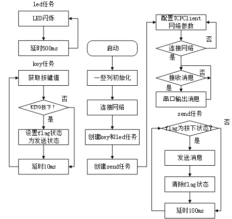 程序流程图能帮助我们更好的理解一个工程的功能和实现的过程,对学习和设计工程有很好的主导作用。下面看看本实验的程序流程图: