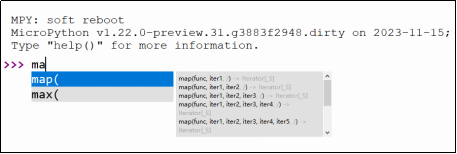 MPY: soft reboot MicroPython v1.22.0-preview.31.g3883f2948.dirty on 2023-11-15; Generic ESP32S3 module with Octal-SPIRAM with ESP32S3 Type "help()" for more information. >>>