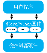 一个MicroPython系统的典型构造如下图:它是由微控制器(系统底层硬件)、MicroPython固件和用户程序三大部分组成。其中,硬件和MicroPython固件是最基础且相对不变的部分,而用户程序则可以随时变更,可以存放多个用户程序到系统中,随时调用或切换,这是使用MicroPython的一个特色。