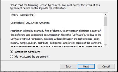 点击上图中的“Next”按键,进入许可协议界面,如下图所示。