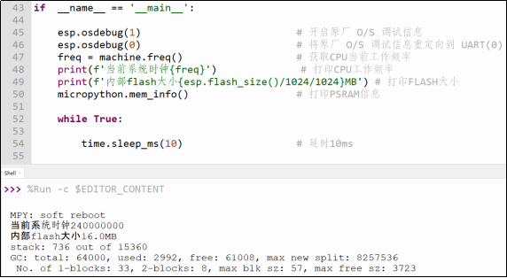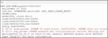 从上图可以看到,Shell交互式窗口提示“MicroPython v1.21.0 on 2023-10-06;Generric ESP32S3 module with ESP32S3”信息,表示已成功烧录V1.21.0版本MicroPython。