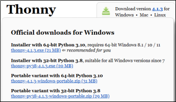 1,下载:首先,您可以在 Thonny的官方网站 上直接下载安装包,如下图所示。