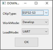 上图中,ChipType选择ESP32S3,WorkMode选择Develop LoadMode选择UART,点击OK,进入下载页面,如下图所示。