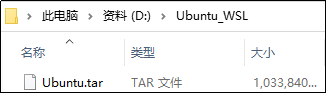 图6.1.1.8 在D:\Ubuntu_WSL目录下生成Ubuntu.tar文件