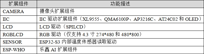 表7.3.1 正点原子提供MicroPython 扩展组件功能描述