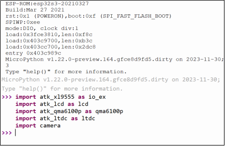 从上图可以看到,在 Thonny 软件 S h ell 交互环境下调用正点原子 C 模块组件并没有提示错误,证明这 些 C 模块的方法及变量可在程序中使用 了 。