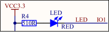 从上图可知,若IO1输出低电平时,则LED亮起,反之,熄灭。