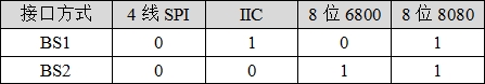 这里要提醒大家的是,该模块不和5.0V接口兼容,所以请大家在使用的时候一定要小心,别直接接到5V的系统上去,否则可能烧坏模块。以下4种模式通过模块的BS1和BS2设置,BS1和BS2的设置与模块接口模式的关系如表24.1.1所示: