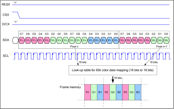 图16.1.2.1 16位色深模式(RGB565)传输颜色数据