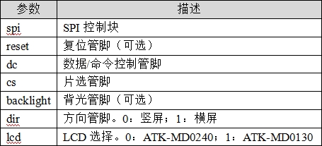 表16.2.2.1 atk_lcd.init构造函数参数描述