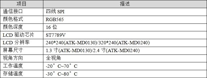 ATK-MD0130和ATK-MD0240 模块的各项基本参数,如下表所示。