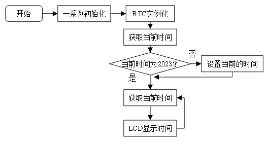 最后,代码进入一个无限循环,在这个循环中,它获取RTC的时间,并将其显示在LCD显示屏上。这个显示包括年、月、日等信息。需要注意的是,获取的RTC时间是一个Python元组类型,所以需要使用索引来获取年、月、日等具体的时间信息。同时,这个代码还使用了time.sleep_ms()函数来进行延时操作,以确保操作的正确性和稳定性。