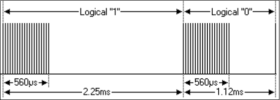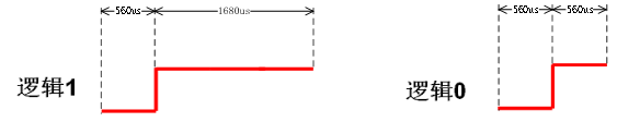 发送协议数据‘1’ = 发射载波信号560us + 不发射载波信号1680us