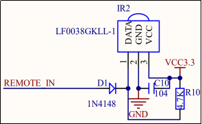 红外遥控接收头连接在ESP32-S3的IO2上。硬件上不需要变动,只要程序将IO2设计为输入模式且开启外部中断,然后将收到的脉冲信号解码就可以了。不过需要注意:REMOTE_IN和SD卡片选共用了IO2,所以它们不可以同时使用。