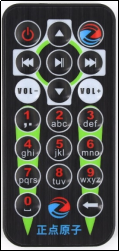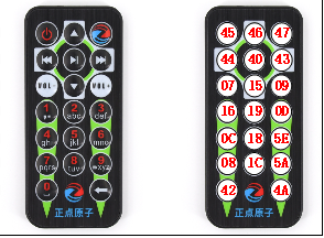 开发板配套的红外遥控器外观如图21.3.2所示: