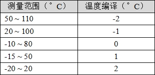 其中 VALUE 即温度传感器的输出值,offset 由温度偏移决定。温度传感器在不同的实际使用环境(测量温度范围)下,温度偏移不同,见下表所示。