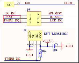 从上图可以看出,1WIRE_DQ并没有直接跟ESP32-S3的IO0相连,而是需要通过跳线帽进行连接。1WIRE_DQ和IO0连接图如下图所示。