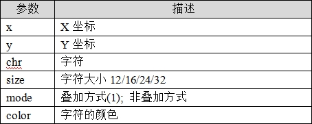 ltdc.char(x,y,chr,size,mode,color)