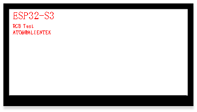 程序下载到开发板后,可以看到LED不停的闪烁,提示程序已经在运行了。同时,可以看到RGBLCD模块的显示如下图所示: