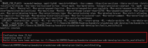 接下来我们输入:cmake -G "MinGW Makefiles" ../../..(这里示例中有点错误)按回车,将文件关联起来,等待CMake完成后如下图所示: