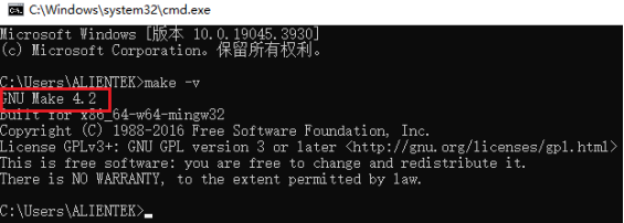 设置完成之后我们还需要验证交叉编译器Toolchain,我们根据上一节方法进入命令行界面,输入:make -v按回车,能够看到GNU Make版本号,表示交叉编译器Toolchain已经安装成功,如下图所示: