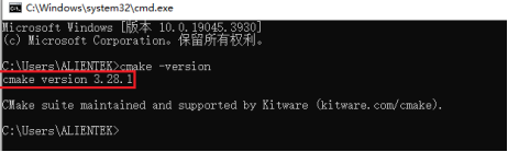 设置完成之后我们要检查验证CMake,使用Win+R打开运行窗口,在运行窗口输入cmd打开命令行界面,输入cmake -version可以看到自己安装的CMake版本,表示CMake已经安装成功,如下图所示: