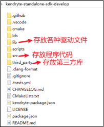 本节我们将详细介绍裸机SDK在Windows 10下的开发环境搭建过程,我们先从上面的GitHub链接下载我们所需的裸机SDK,下载后我们先解压,可以放在任意目录上,注意存放路径不要带有中文即可,为了方便我们可以先放在桌面,SDK内部文件结构如下图所示: