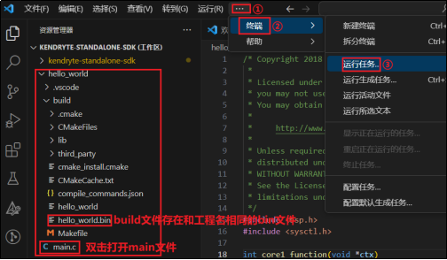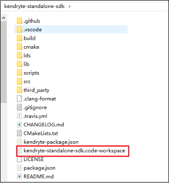 可以看到,里面有一些下载和擦除的方法,比K-Flash的GUI程序更多功能,下一步用VSCode打开我们的SDK工程,首先我们进入到SDK的根目录,直接双击kendryte-standalone-sdk.code-workspace打开,如下图所示: