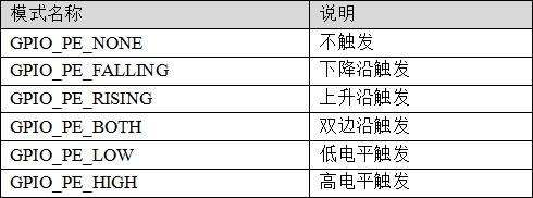 ②:参数edge为配置引脚的中断方式,如下表所示: