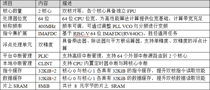 Kendryte K210芯片搭载基于 RISC-V ISA 的双核心 64 位的高性能低功耗 CPU,具备以下特性,如下表所示: