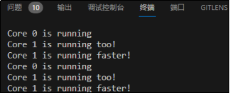 可以看到,我们在mian函数先获取当前运行的核心编号,然后通过printf打印编号和数据,接着注册核心1并启动,最后在一个循环中每隔1秒打印当前核心运行的提示。
