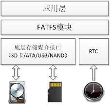 需要我们编写移植代码的是FATFS模块提供的底层接口,它包括存储媒介读/写接口(diskI/O)和供给文件创建修改时间的实时时钟。