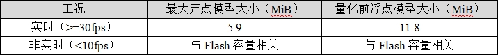 11. 实时工作时最大支持神经网络参数大小为5.5MiB到5.9MiB
