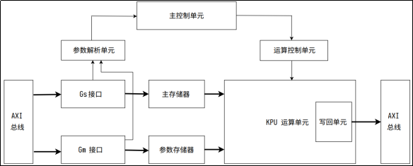 9. 支持卷据参数片上存储,存储容量为72K字节,可以边卷积边读取卷据参数,每层网络最多可以读取64次