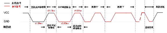 下面,我们介绍一下DHT11的传输时序。DHT11的数据发送流程如下图所示。