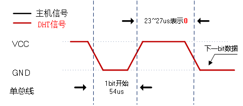 DHT11输出数字‘0’时序如下图所示。