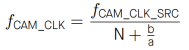① 第一条公式中的N、b和a都是通过HP_SYS_CLKRST_PERI_CLK_CTRL120_REG寄存器进行配置的。N的取值范围为2≤N≤256,通过HP_SYS_CLKRST_CAM_CLK_DIV_NUM位进行配置。b是通过HP_SYS_CLKRST_CAM_CLK_DIV_NUMERATOR位进行配置,而a是通过HP_SYS_CLKRST_CAM_CLK_DIV_DENONMINATOR位进行配置。