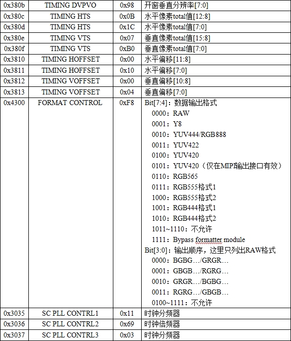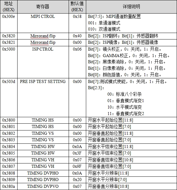 表37.1.1.1 OV5645寄存器表