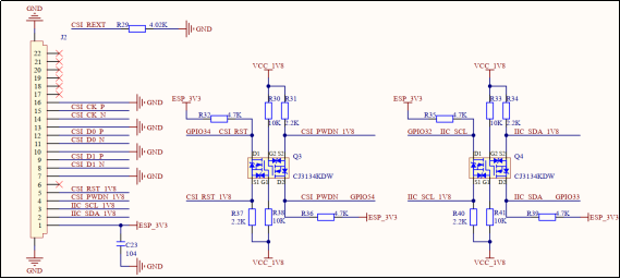 MIPI CSI接口使用专用数字管脚,管脚序号为42~48。
