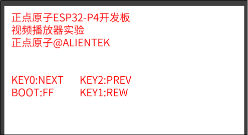至此,本例程介绍就结束了。本实验,我们在开发板上实现了视频播放,体现了ESP32-P4强大的处理能力。