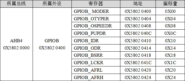 表5.3.4.3 GPIOB寄存器相对外设基地址的偏移量