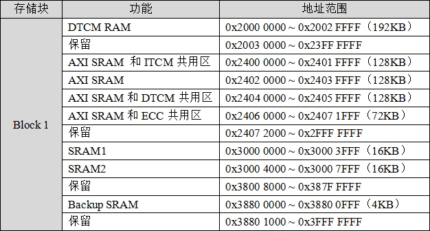 第二个块是Block 1,用于存储数据,即RAM空间,其功能划分如表5.3.3.3所示: